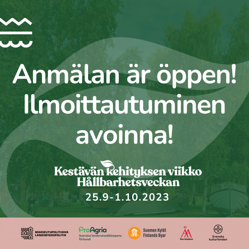 Kestävän kehityksen viikolla haluamme luoda yhdessä yhdistysten, kuntien, yritysten ja muiden sidosryhmien kanssa tapahtumaviikon, jossa nostetaan esille kaikki hyvät esimerkit maaseudulla tehdystä kestävän kehityksen työstä.