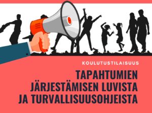 Tiistaina 3.3.2020 Loimaalla pidetyn ”Tapahtumien järjestämisen luvat ja turvallisuusohjeet” -koulutustilaisuuden esitykset ovat ladattavissa alta. Tapahtumajärjestäjän opas (Aalto-yliopisto) Tapahtumajärjestäjän opas (Etelä-Pohjanmaan liitto) Tapahtumajärjestäjän opas (Tampereen kaupunki) Yleisötapahtumien pelastussuunnitelmat Kokoontumislaki yleisötilaisuuksista Muistilista tapahtumanjärjestäjälle