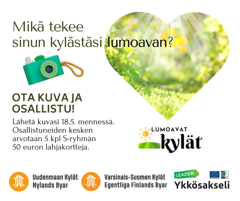 Valokuvahaasteen järjestää Lumoavat kylät -hanke. Hanketta hallinnoi Leader Ykkösakseli ja toteuttavat Uudenmaan Kylät sekä Varsinais-Suomen Kylät.